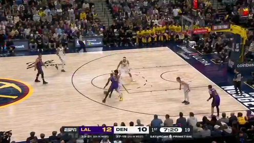 2月23日讯 NBA常规赛,湖人客场挑战掘金。湖人33胜21负排在西部第5,掘金豪取9连胜,37胜19负高居西部第3。比赛开始,湖人开场不断冲击内...